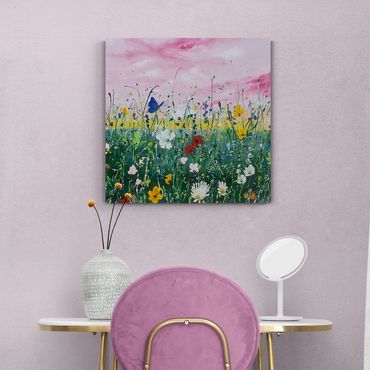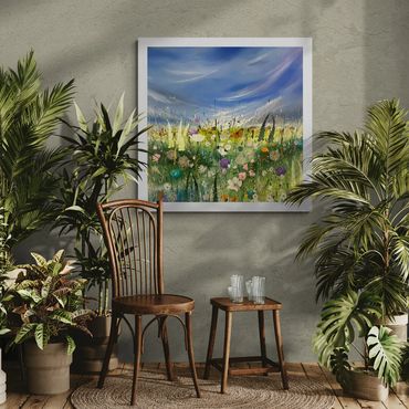Katy grew up in Dorset and now lives and works on the Wiltshire/Somerset border, surrounded by the beautiful countryside which is a major influence for her work. Focusing on skies, floral meadow and gardenscapes, her paintings celebrate nature, the magic of our surroundings and childhood memories. Her work is whimsical, light-hearted and playful.